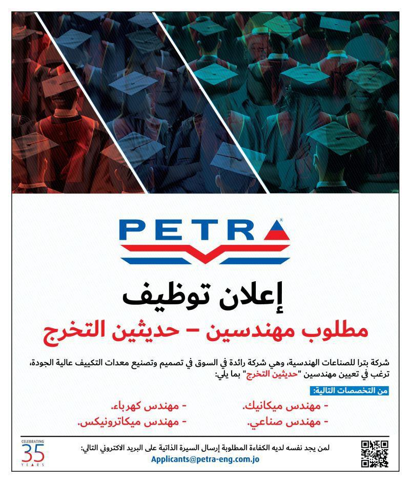تُعلن شركة بترا للصناعات الهندسية، الرائدة في تصميم وتصنيع أنظمة التكييف عالية الجودة، عن رغبتها في استقطاب مهندسين حديثي التخرج من التخصصات التالية: