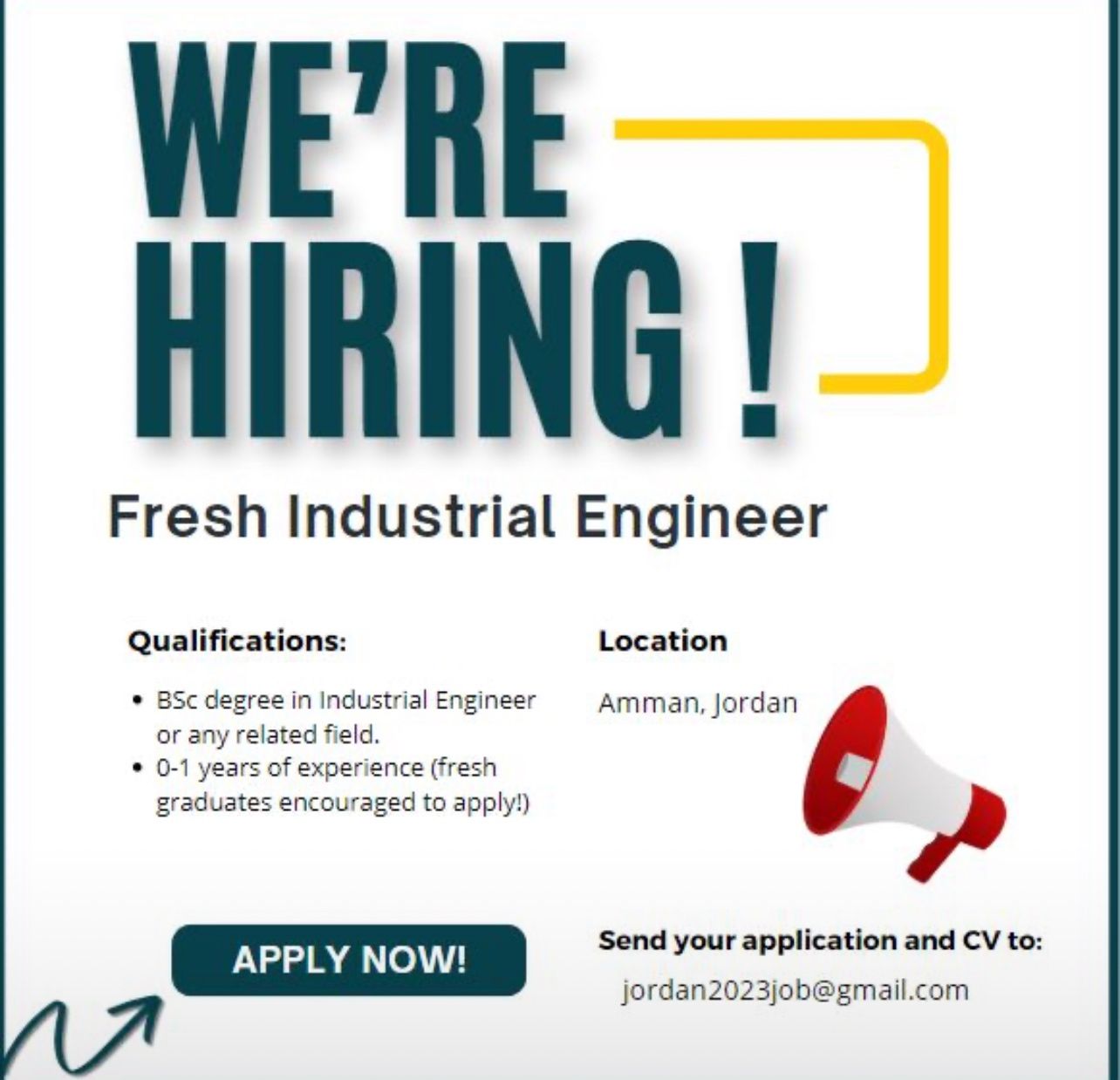 • الخبرة: من 0 إلى 1 سنة (نشجع الخريجين الجدد على التقديم!)